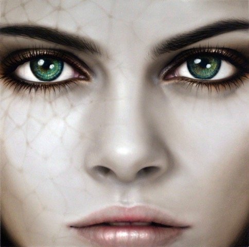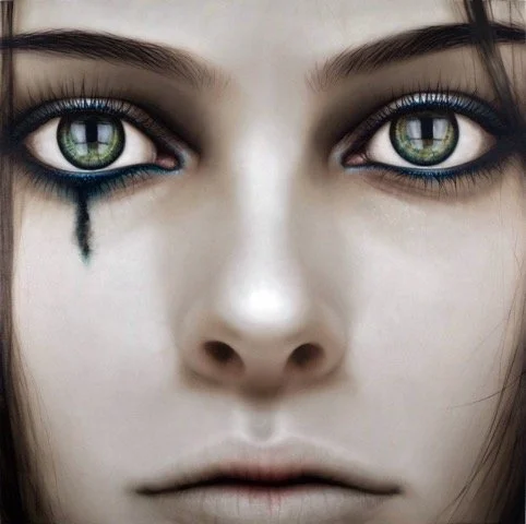 “I’m drawn to things that posses paradoxical qualities. Things that pull you in opposite directions, yet somehow maintaining the balance somewhat precariously: serene yet perilous; solemn yet whimsical; poised yet anxious; precious yet trashy...” says Edmondson, whose intense canvases lure their viewer into an otherworldly plane. These captivating faces with enchanting eyes evoke both beauty and an uncanny sense of encountering what lies beyond the veil.