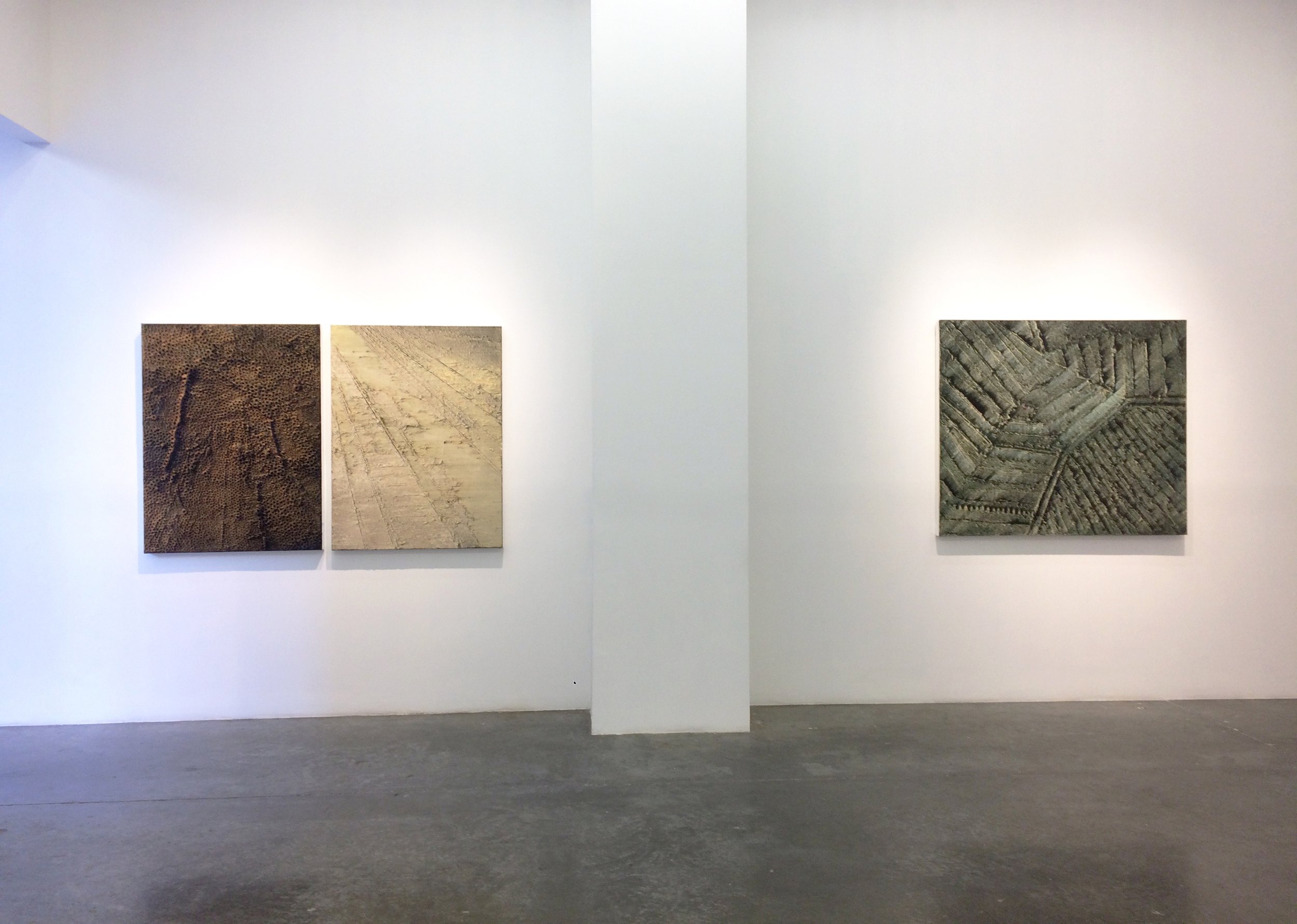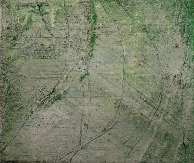 British artist Melanie Comber’s distinctive oil and pigment works elicit an emotional response through their abstract composition and perspective. The artist layers different ratios of oil paint to pigment, giving a rich coloration with a unique, bold matte textured finish. Once applied, Comber introduces a third dimension to her works by carving haptic patterns that evoke terrestrial scenes of beaches, roads, and other landscapes.