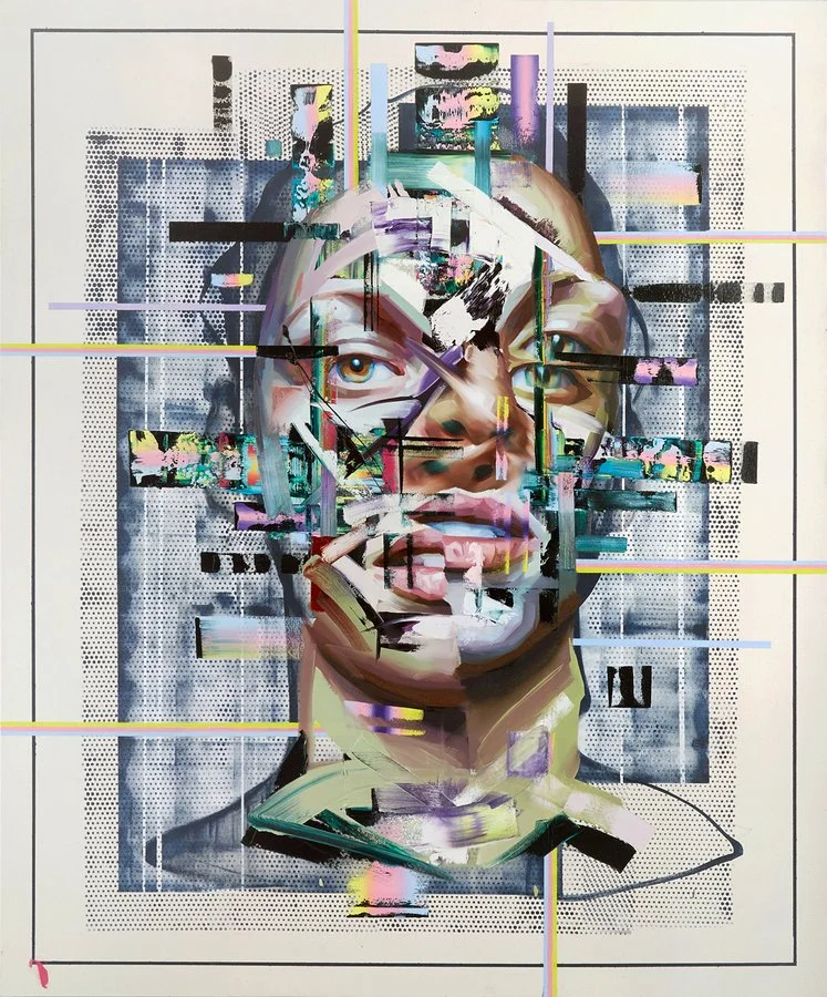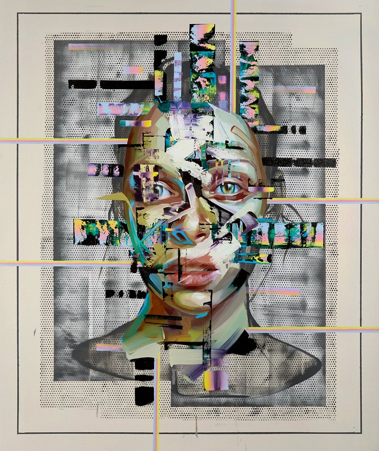 Justin Bower, known for his anonymous portraits, uses his brushstrokes to give us an understanding of an extensive subconscious reaction to technology. The fragmentation of his subjects is a reflection of today’s generational influence from technology. He intends to identify this disjunction and offer a perspective of techno saturation.