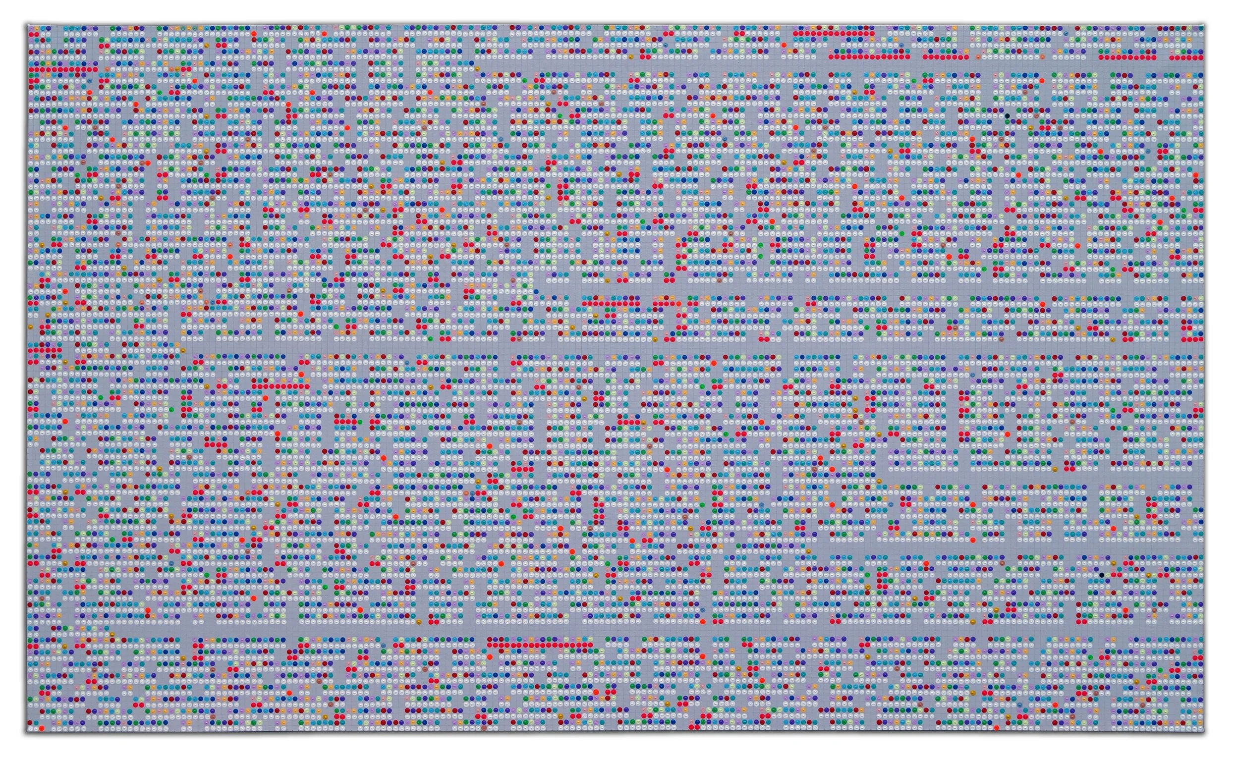 For his painterly works, Rowell uses acrylic on canvas to create a complex grid of language. However, his expertise translates/transcends the canvas to large-scale light installation, metal sculpture, and British currency. Rowell focuses on contemporary technological advances and their mediated effect on communication. His intricate paintings are constructed with a language based on color, pattern, and form conceived by the artist. In each, a message to decipher prompted by the title. Making his debut with the gallery in July, this marks the first time Rowell will be exhibited at the gallery.