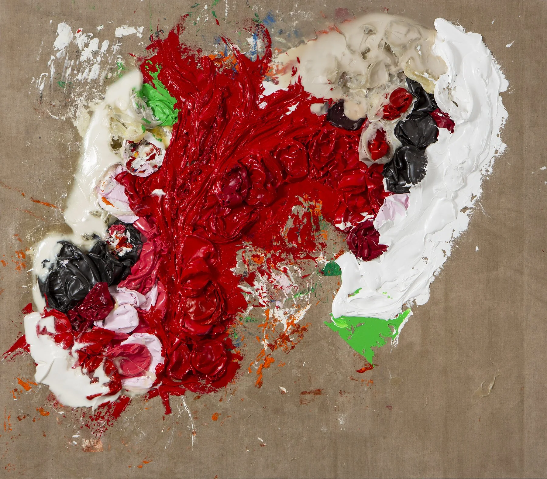 acrylic and modeled acrylic on linen, 177.8 × 203.2 cm (70 × 80 inches)