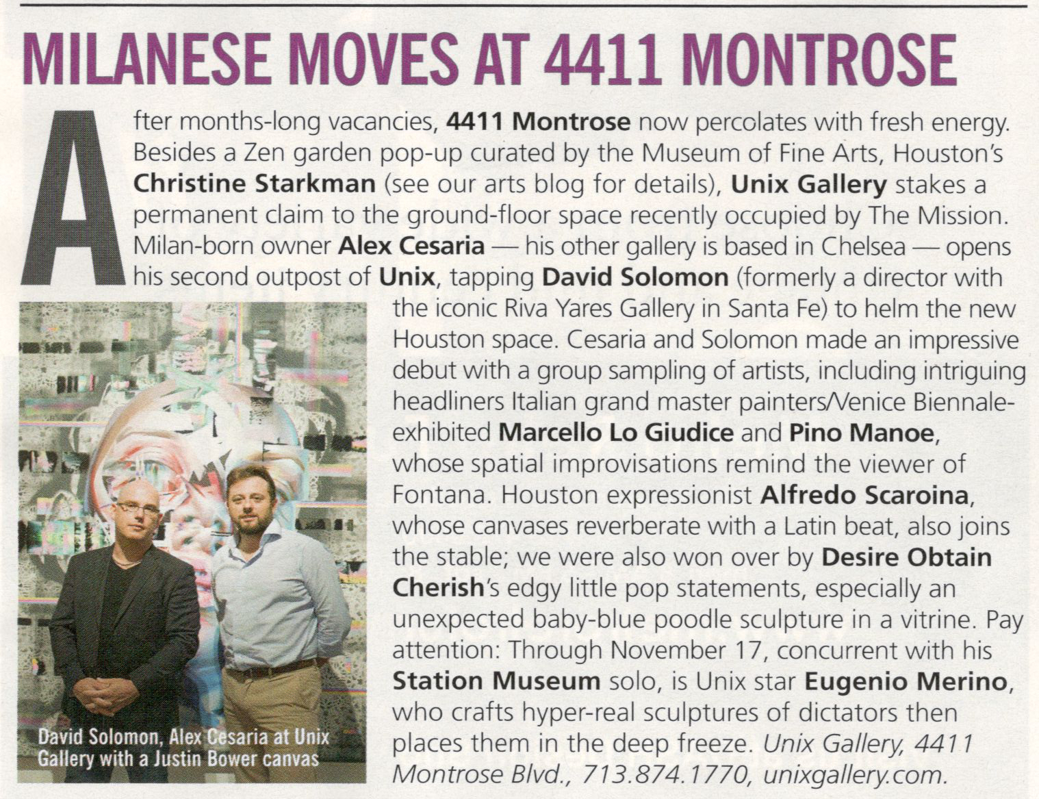 4411 Montrose now percolates with fresh energy as UNIX Gallery stakes claim to the groundfloor space in the Houston, TX art scene.